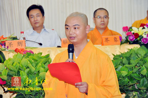 2011年6月3日,闽南佛学院第十二届本科暨第六届预科毕业典礼在南普陀寺讲堂隆重举行。全国人大代表、中国佛教协会副会长、闽南佛学院院长圣辉大和尚,厦门市佛教协会会长、南普陀寺方丈则悟大和尚,研究生导师济群法师,南普陀慈善会常务副会长慧然法师,闽院副院长法源法师、副院长兼教务长传明法师、副院长兼办公室主任净心法师、教导长达源法师等闽院各部门领导以及任课法师老师和全体学僧出席了毕业典礼。此外,厦门市民宗局蔡永华副局长、黄镇辉处长也应邀参加典礼。典礼仪式由闽院常务副院长界象法师主持。 上午9时,毕业典礼在庄严雄壮的国歌声中拉开序幕,院长圣辉大和尚发表了语重心长的讲话:首先大和尚向学僧们圆满完成学业表示热烈的祝贺,向辛勤教学的法师老师表示崇高的敬意,对一贯支持闽院办学的厦门市委市政府和市民宗局、市佛协表示衷心的感谢;其次,大和尚还对毕业僧提出几点要求:一、谨记爱国爱教的优良传统;二、要有奉献精神,为社会、为佛教尽心尽力,以圆满的人格、僧格、国格立足于社会;三、系念母校,常怀感恩之心,维护佛教健康持续发展,将佛教发扬光大。最后,大和尚祝全体毕业僧“福慧双增,吉祥如意”。 则悟大和尚代表厦门市佛教协会在典礼上为学僧们送上了‘毕业赠言’:一要深信因果;二要谦虚谨慎,任劳任怨;三要明确目标,学有所成;并祝学僧们在三宝的加被下,能在社会各个领域把自己的路走好,常回家看看。 蔡永华副局长以风趣生动的话语,结合自己的人生经验,勉励学僧们在今后的弘法道路上保持平常心态,并提醒毕业僧离开闽院之后,要一如既往的弘扬爱国精神,实践人生佛教的思想,为社会和谐、人民安乐做出应有贡献;勇于承担社会责任,积极进取,认真工作。 最后,院长圣辉大和尚亲自为毕业僧颁发毕业证书,全体毕业僧起立致发愿词,另有法师代表、在校学僧代表、毕业僧代表先后致辞。毕业典礼在庄严的《三宝歌》中圆满结束。 中午12时,闽院全体法师老师及毕业僧在普照楼用斋。 一、毕业典礼