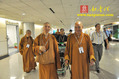 2011年6月7日下午13时20分,厦门印顺导师舍利恭迎团一行飞抵台北桃园国际机场,在团长、厦门佛协会会长、南普陀寺方丈则悟大和尚的带领下,恭迎团一行不顾旅途的劳累,直接前往慧日讲堂参观访问。慧日讲堂道脱法师及寺内四众弟子在山门外热情迎接,并陪同大家参观了讲堂、印顺导师纪念堂等处。 慧日讲堂位于台湾台北市。由印顺导师创建于1960年,是台湾著名佛教弘法道场之一。自创建以来,除定期举办讲经共修外,亦曾创办‘太虚佛学院’、‘慧日佛学研修会’以摄导佛教青年。此外并设有‘正闻出版社’,主要印行印顺导师之著作。其中,《妙云集》风行海内外,对1950年代以后的华人佛教,有相当程度的影响。 16时35分,恭迎团一行来到台湾中国佛教会,台湾中国佛教会理事长圆宗长老特别准备了一个庄严隆重的欢迎会。会上,圆宗长老、则悟大和尚、法云法师、明光法师、心茂法师、心智法师等分别讲话。印老是两岸佛教界的精神领袖,大家共同期望迎奉法会功德圆满,希望本次活动,对两岸佛教教育事业的发展有着进一步的推动作用。 傍晚18时许,台湾中国佛教会在台北颇具盛名的素食餐厅——莲香斋宴请则悟大和尚一行。 一、抵达台湾桃园国际机场 ![]() ![]() ![]() ![]() ![]() ![]() ![]() ![]() ![]() ![]() ![]() ![]() ![]() ![]() ![]() ![]() ![]() ![]() ![]() ![]() ![]() ![]() ![]() ![]() ![]() ![]() ![]() ![]() ![]() | |||
