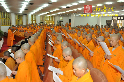 9月4日,时值中秋佳节来临之际,闽南佛学院2011年秋季开学典礼于南普陀寺讲堂隆重举行。全国人大代表、中国佛教协会副会长、闽南佛学院院长圣辉大和尚,厦门市佛教协会会长、南普陀寺方丈则悟大和尚,市佛协常务副会长、观音寺住持定恒法师,闽院图书馆馆长了法法师、常务副院长界象法师、副院长法源法师、副院长兼教务长传明法师、副院长兼办公室主任净心法师、教导长达源法师、副教务长中观法师、办公室副主任悟源法师、副教导长超波法师以及厦门市民宗局蔡永华副局长、一处黄镇辉处长,实业社曾全民主任等出席典礼并于主席台就座。会议由常务副院长界象法师主持。 上午9时整,全体师生诵经祈福后,典礼正式开始。首先,院长圣辉大和尚对新入学的学僧送上祝贺,对支持闽院办学的市委市政府、市民宗局和各界朋友表示感谢,对长期投身闽院教育事业的教师表示敬意;同时,还语重心长地教导学僧们要“爱国爱教、尊师重道、学修并进、团结友爱、克服困难、注意身体”,以此展现僧人的良好风范,维护佛门的正面形象,荷担起神圣的如来家业。 会上,蔡永华副局长代表市民宗局发表讲话,诚恳的勉励学僧要珍惜机会,学修并重,全面发展,为将来成为佛教的栋梁之才打下坚实的基础。之后,则悟会长在讲话中督促学僧们要牢记院长的教导,发大心,深怀感恩之心,精进修学,在未来的日子里,不断提升和加强自身的道德修养。 接下来,院长大和尚和蔡副局长等为上一学期优秀学僧颁奖。教导长达源法师宣读了班主任任命书;最后,新生致发愿词,本次典礼在庄严的《三宝歌》声中圆满落幕。