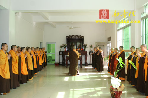 2011年11月23日(农历10月28日),是已故南普陀寺方丈、闽南佛学院院长妙湛老和尚圆寂16周年祭日。上午9时30分,南普陀寺首座了法法师领众齐聚在妙老的塔墓前,举行庄严而隆重祭奠仪式。木鱼声声,佛号悠悠,僧众齐声恭诵,用虔诚的唱念寄托对妙老的深切缅怀和无尽感恩。南普陀寺各大班首执事、常住僧众、闽院师生及护法居士等参加了祭奠。 10时30分,闽院女众部于紫竹林寺图书馆二楼妙老塑像前举行祭奠上供仪式。闽南佛学院副院长、紫竹林寺监院法源法师拈香主法,大众双手合十,心中虔诚地祈盼:妙湛老和尚,早还娑婆,乘愿再来。 每逢纪念日、清明节、过年,南普陀寺、紫竹林寺僧众都要扫塔祭祖,以慎终追远、不忘祖恩,十数年来,不曾间断。 一、南普陀寺妙老塔前上供