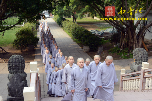 2015年3月18日上午,闽南佛学院于厦门南普陀寺讲堂隆重召开2015年春季开学大会。全国人大代表、中国佛教协会副会长、湖南省佛教协会会长、闽南佛学院院长圣辉大和尚,福建省佛教协会副会长、厦门市佛教协会会长、南普陀寺方丈、闽南佛学院院务委员会副主任则悟大和尚,市佛教协会副会长、南普陀寺首座兼监院、闽南佛学院常务副院长界象法师,市佛教协会副会长、闽院副院长法源法师,市佛教协会副会长兼秘书长、闽院副院长净心法师,市佛教协会副秘书长、闽院副院长传明法师,闽院办公室主任界淞法师、教导长法仪法师等院领导和闽南佛学院全体师生出席大会。常务副院长界象法师主持本次大会,邀请圣辉院长向全体师生开示及传达全国两会会议精神;并请则悟会长作了指导性讲话;与会领导为优秀学僧颁奖。[图集] 上午9时,开学大会在庄重的国歌声中隆重开幕。界象法师向大家解释了本次会议延迟召开的原因,并请院长为众开示。圣辉院长说,“因在北京参加全国两会,由于我的原因耽误了开学大会的召开,表示歉意”。院长随后向全体师生介绍了两会的盛况,着重传达了两会的精神和“四个全面”战略。院长说,我们国家在十八大以来,党和国家领导人厉行节俭与反腐倡廉,救了我们国家、我们党,同时也救了佛教。现代的佛教趋渐商业化、庸俗化等边缘,我们要警惕反醒。尽管反腐在佛教界还没有深入,但佛教界思想文明要山清水秀,要深入民心,深入大众的心。闽南佛教积极向上,在全国佛教界是一面旗帜。其中,厦门南普陀寺久负盛名,自则悟大和尚任方丈以来,实施了一系列举措——取消门票、文明进香、垃圾不落地、寺院零经济零商业等,取得了良好的社会效果,优良的社会风气和生态环境,也让我们看到了闽院的光明前景。圣辉院长还特别感谢了学院诸位副院长多年来的尽心尽力,为闽院的发展做出巨大的贡献。院长还说,闽院不光是学修的场所,也是两岸交流的平台,年初学院派遣了11名在校研究生赴台湾圆光佛学院研修学习,让两岸佛教界交流往深度和广度进一步拓展。今年,闽院有本科、预科班毕业,秋季又要招生,不断毕业,不断招生,如此生生不息,为佛教界的发展源源不断的输送了生力军。希望大家继续刻苦修习,佛教界以后十几二十年就靠你们这些年轻僧才为佛教事业做更多的贡献,创建更美好的未来。祝大家在新年有新进步,如意吉祥,阿弥陀佛! 则悟会长在讲话中表示,希望大家谨记院长的教诲,并教导学僧要善于运用所学的知识思考实践,要求全体师生要严谨学风道风。则悟会长说,从两会精神,到闽院的发展及现在佛教界存在的问题,作为即将毕业的学僧,要学会运用所学的知识进行分析思考。南普陀寺经过多年的努力,逐步发展成集慈善、教育、弘法、素食于一体的弘法利生中心,如此更要有清净的道场,因此今年重点实行“以戒为师,以法为师”,以继续保持良好的道风学风。希望大家严持戒律,刻苦学习,祝福大家新学期福慧增长。 随后,圣辉院长宣读并任命学院部门负责人名单:任命静安法师为闽南佛学院教务长、照愿法师为副教务长兼教导处男众本科二年级班主任、明坤法师为副教务长、明方法师为闽南佛学院网站站长、法缘法师为教务处教研窒主任、道诚法师为教务处教务室主任。之后,与会领导为2014年下半学期优秀学僧及参加全国汉传讲经交流会中获得优异成绩的学僧一一颁发荣誉证书,以示鼓励。 界象法师代表闽院师生就圣辉院长的教诲与则悟会长的指导表示感谢,并作总结讲话说:今年闽院将举行90周年院庆,90年在历史长河中不算长,但是,闽院却是我国佛教界办学历史最悠久的佛学院,是生源最多、毕业学僧最多的佛学院,这是闽院的光荣。希望同学们珍惜在学院学习的因缘,福慧双修,不忘初心。最后,祝各位同学道业增长,学习进步。 10时许,开学大会在《三宝歌》声中圆满结束。