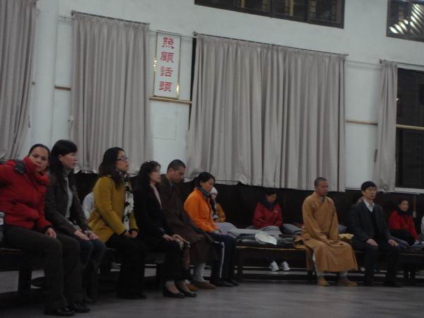 2010年1月6日晚上,了法大和尚在南普陀寺禅堂为参加禅七的四众弟子讲开示。了法大和尚说:“禅宗是传佛的心印,佛的心印是般若波罗宻智慧到彼岸,我们打禅七的目的是克期求证,明心见性。利用七天的时间,放下万缘,好好的在心地上用工夫,参加禅七的人不要把妄想杂念带到禅堂来,一心用功,不失正念觉知,才有证得的可能。”了法大和尚还向大众介绍禅宗的由来,二祖慧可为法忘躯的求法精神,勉励大众要向古来大德学习,禅堂内一百多人认真聆听了法大和尚的开示。