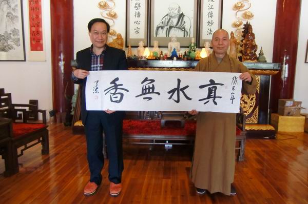 左本寺方丈上了下法大和尚 右陈作荣部长