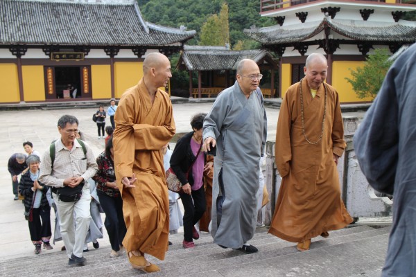 2014年10月22日上午9点30分,台湾慈光寺方丈、慈光佛学院院长惠空大和尚一行,在温州护国寺住持了正法师的陪同下参访雁荡山能仁寺,受到能仁寺方丈了法大和尚的热情接待。了法大和尚到山门口迎接客人的到来,之后参观大殿宝殿、竺摩纪念馆等殿堂,然后宾主一起到方丈楼座谈。了法大和尚首先欢迎惠空大和尚一行到雁荡山能仁寺参访,并向客人介绍能仁寺的佛教历史,和近年来寺内僧人的修学情况。惠空大和尚也向大家介绍了他对佛教的认识,和对永嘉禅研究的心得。之后宾主双方互赠礼品,作为纪念。