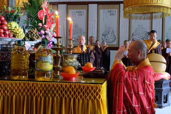 沐佛结束之后,两序大众善男信女,在大雄宝殿举行上供法会。并愿以此功德回向一切众生,止恶向善,福慧增长。世界和平,正法久住,人民安乐。现场秩序井然,气氛庄重。最后回向:“愿消三障诸烦恼,愿得智慧真明了,普愿罪障悉消除,世世常行菩萨道”。